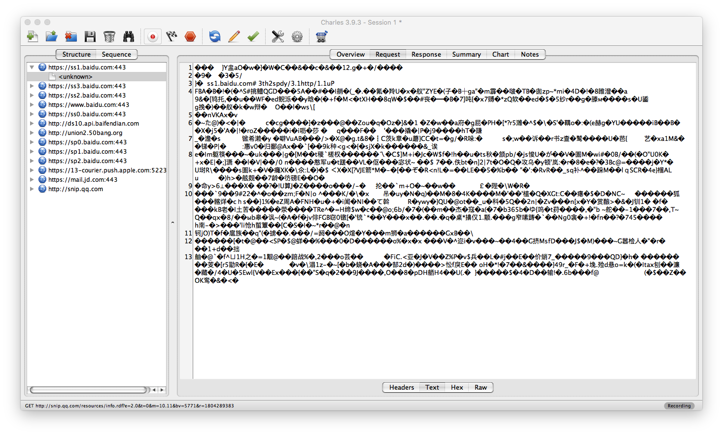 !!!完成以上操作,就完成Charles抓取HTTP(S)数据包的所有配置了。查看Charles,我们可以看到数据包的内容了。
