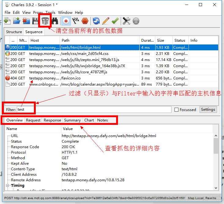 Summary: 查看发送数据的一些简要信息(主机,状态码,数据的类型,header和body大下,加载时间,总时间)