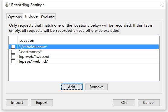 exclude 表示不显示的会话,在会话列表中右键选择 ignore 时,对应的url会出现在这里;