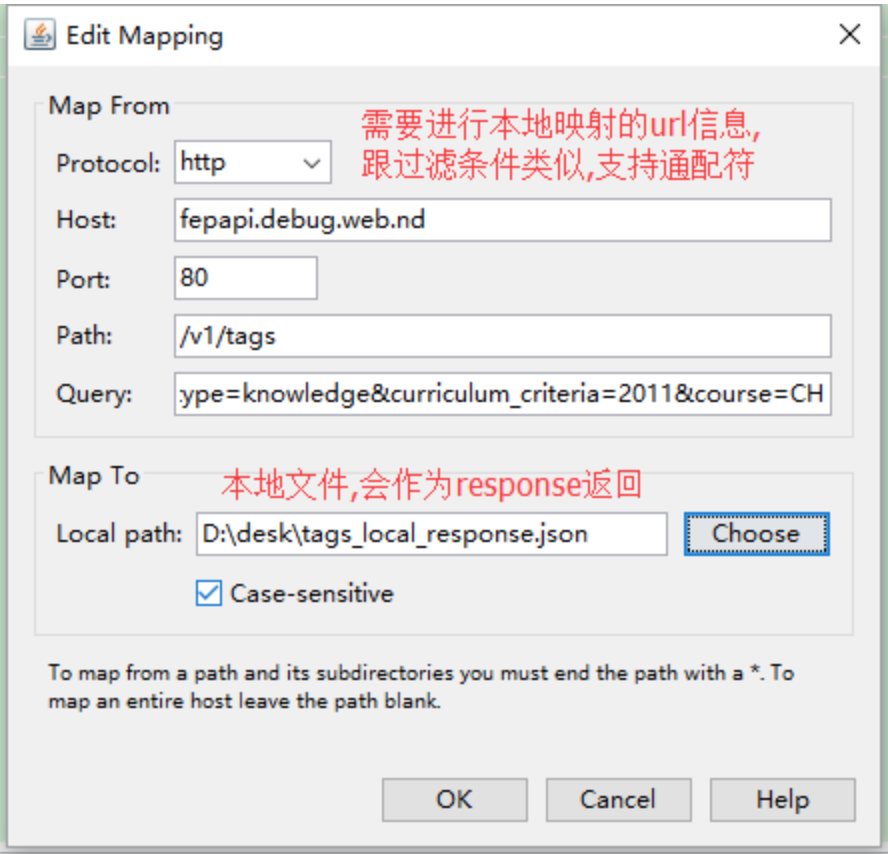 这个跟Fiddler的autoResponse功能类似,可以指定本地文件(map local...)也可以指定为其他服务器(map remote...)上的文件,我们介绍前一种;