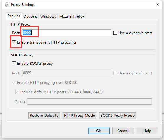 接下来打开Charles的代理设置:Proxy->Proxy Settings,设置一下端口号,默认的是8888,这个只要不和其他程序的冲突即可,并且勾选Enable transparent HTTP proxying。