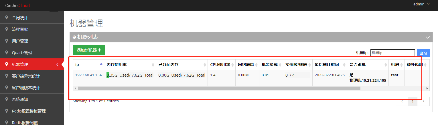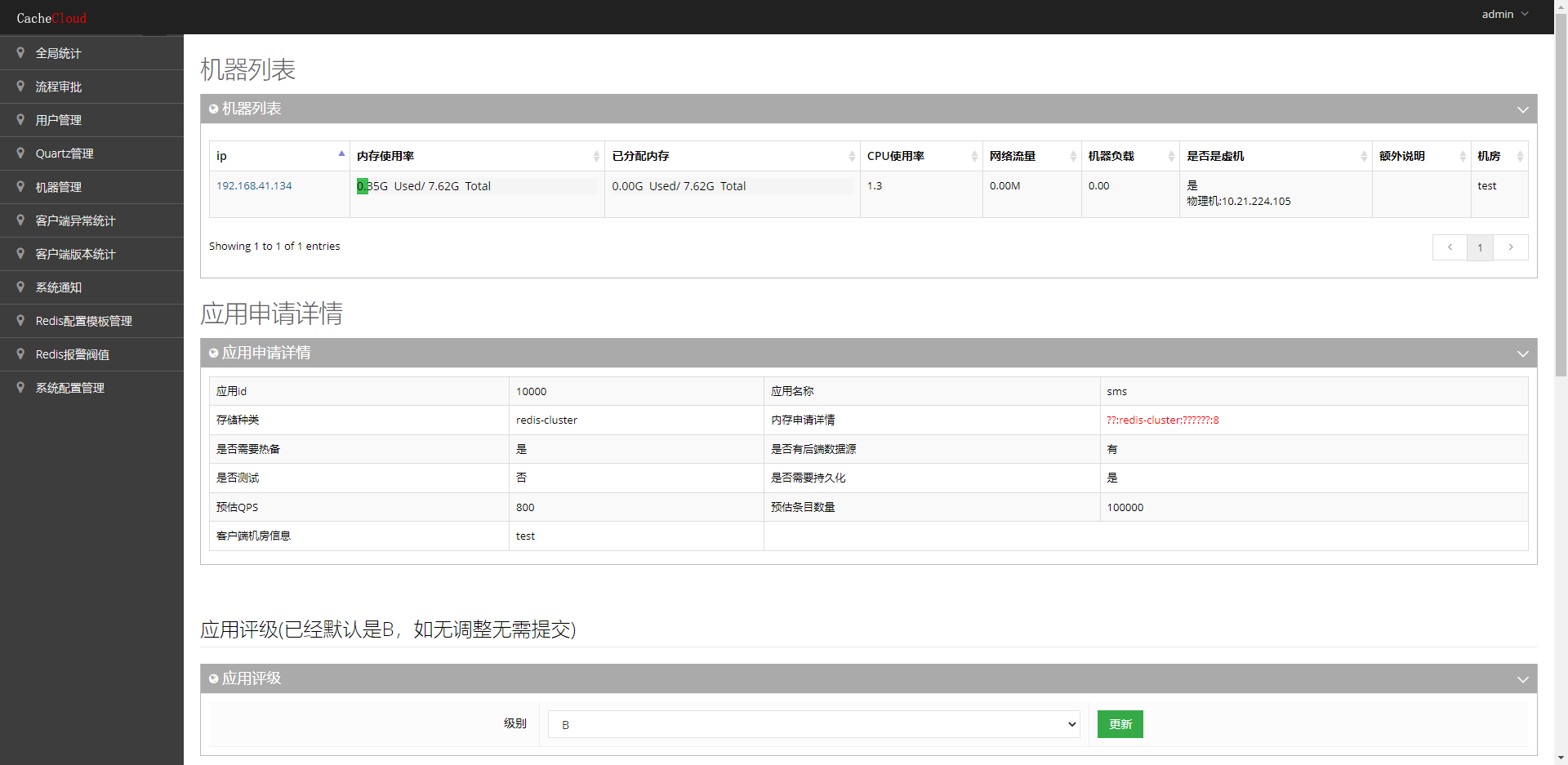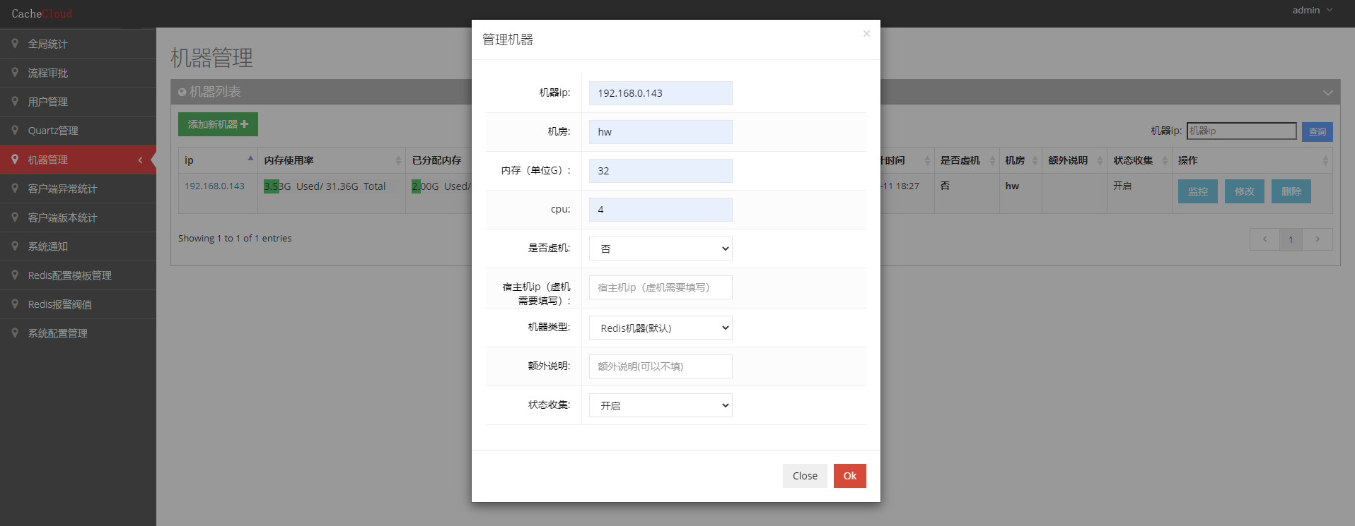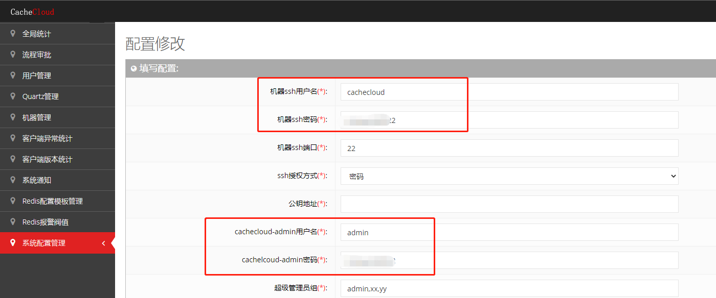 其中机器ssh用户名为初始化时配置的cachecloud账密