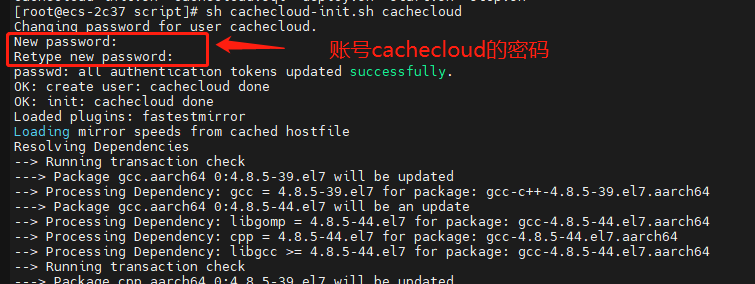 在script目录下执行初始化命令:sh cachecloud-init.sh cachecloud(系统账号)
