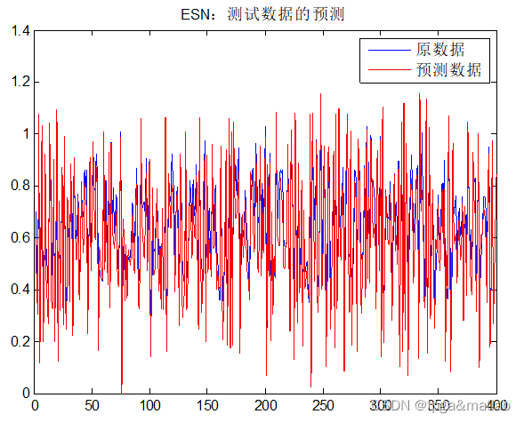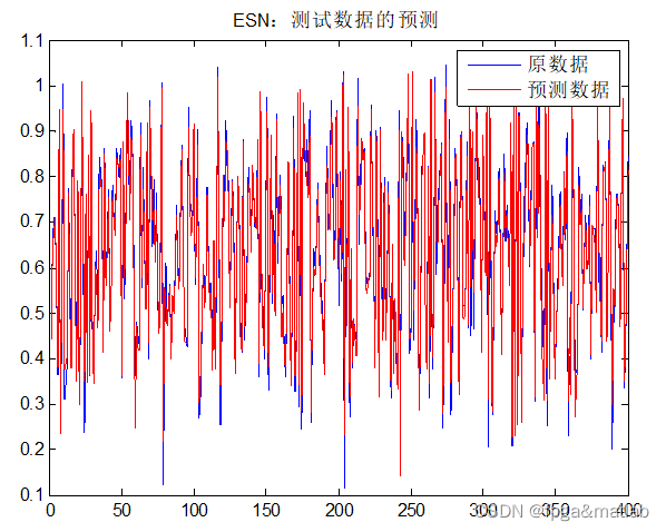 title('ESN-ELM:测试数据的预测');%计算测试数据的预测结果: