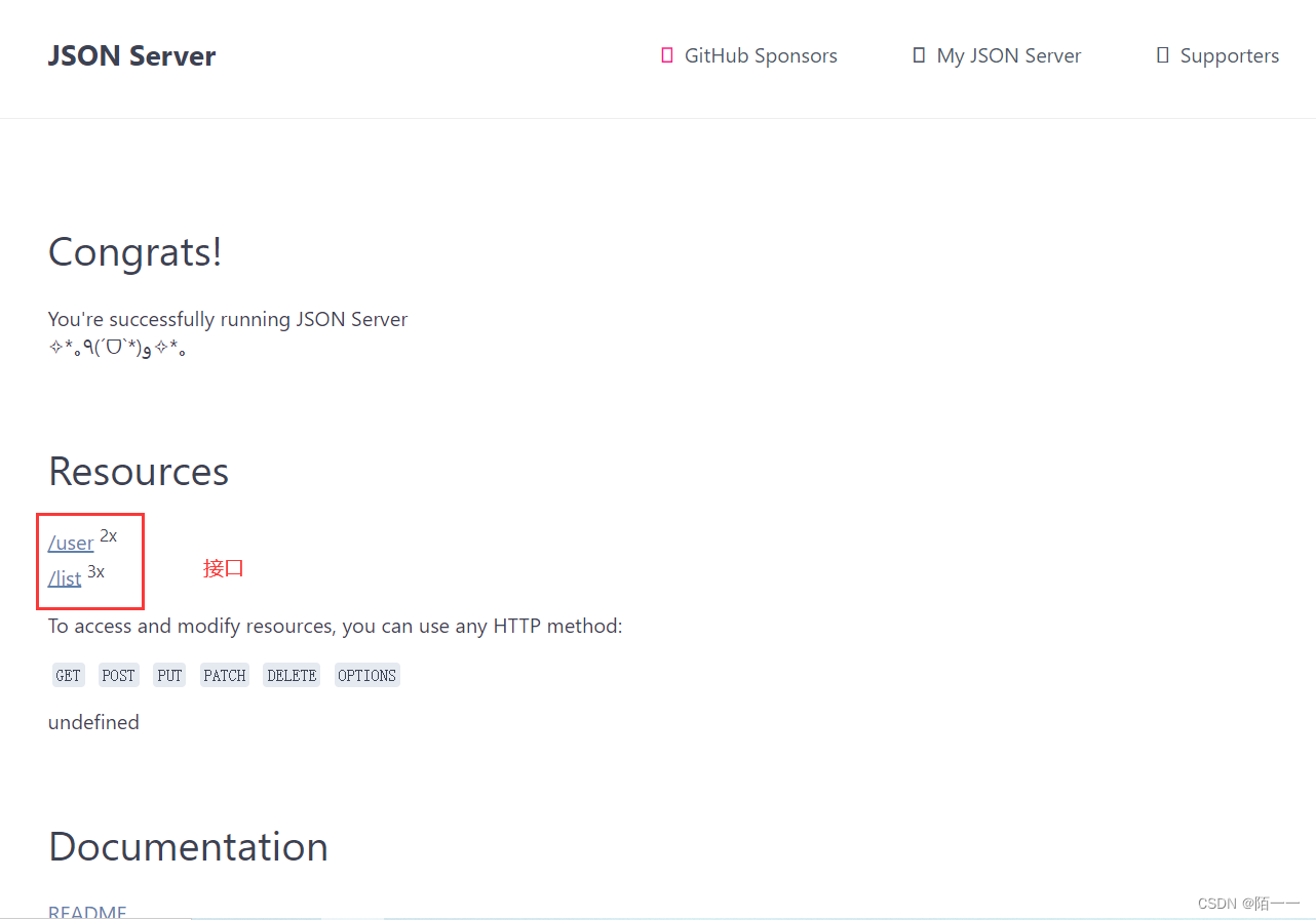 (7)json-server有很多接口;输入下面命令,启动一台后端服务器: