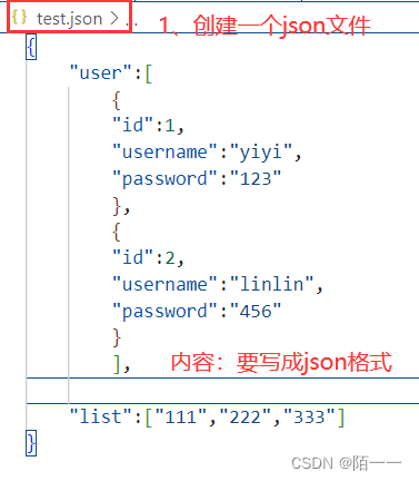 结果发现:我们这个接口就是json文件里的第一层的键“user”,“list”,打开网址发现网址是键结尾,内容是键里面的内容,所以说json文件里的第一层键就是服务器对应的接口。键有多少,接口就有多少。