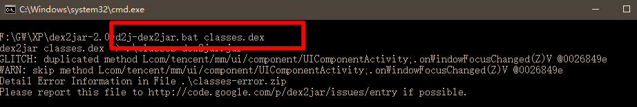 d2j-dex2jar.bat classes.dex 或 ./d2j-dex2jar.bat classes.dex -
