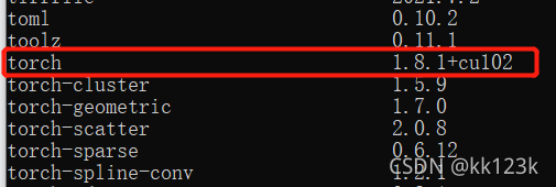 比如我的是1.8.1,cu102版本,那么我就装1.8.1 cu102版本对应的那四个关联包,如下命令: