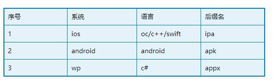 wp手机:windowphone系统,由c#语言编写, 一般说到混合开发不考虑这个版本