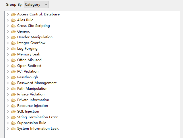 3). 自定义规则模板可以按照漏洞类型(Category)和规则类型(Rule Type)进行分类,不管是何种方式分类,这些模板大体上分为,数据污染源tainted规则,数据控制流规则,数据传递规则,以及漏洞缺陷爆发的sink规则。只要理解了这些规则模板,和开发语言的函数特征,建立规则就简单了。