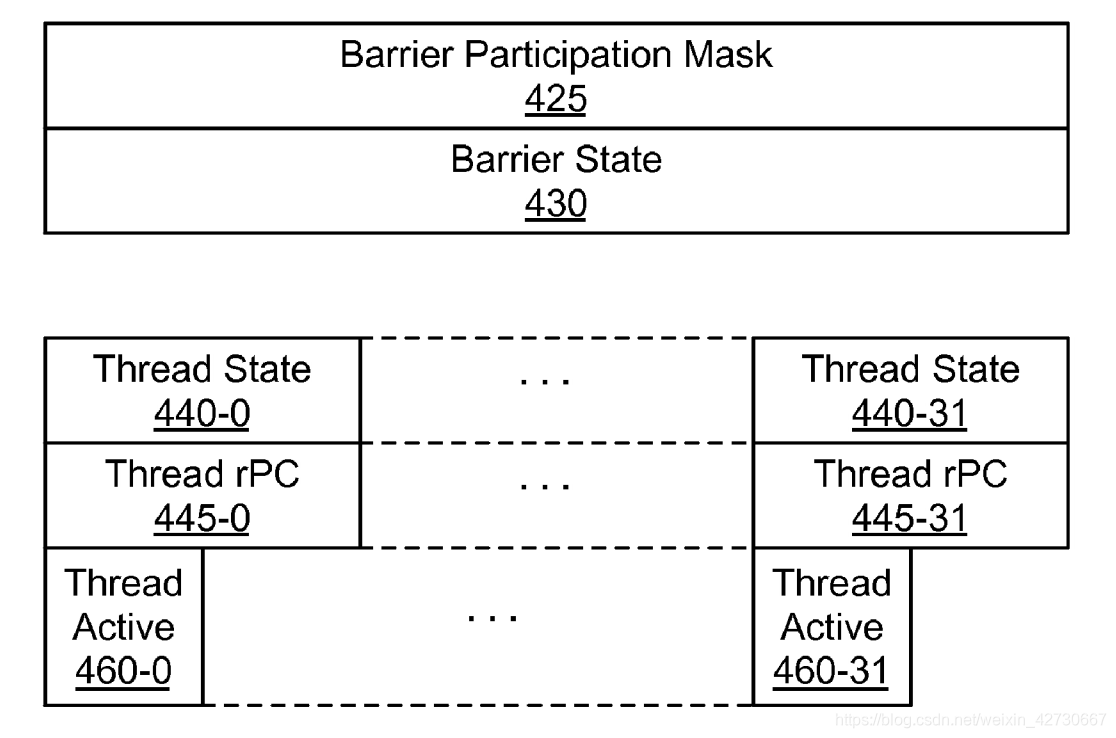 Barrier State用于跟踪哪些线程达到了convergence barrier状态。