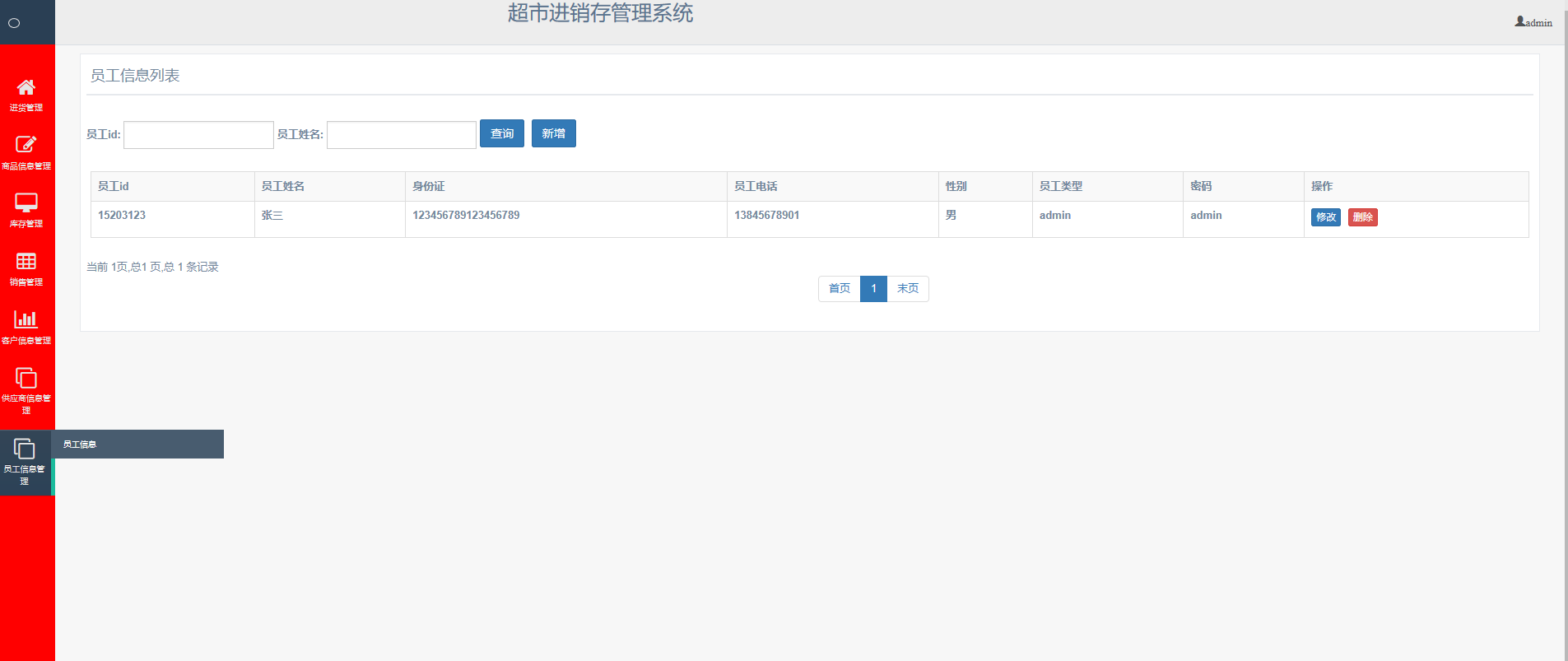 (7)员工信息管理:用户可以在该模块中进行员工信息添加,员工信息查看,员工信息修改以及员工信息查看操作。