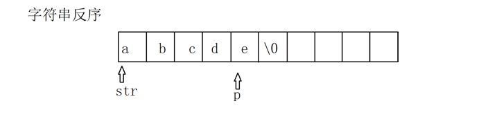 {char* p;for (p = str; *p != '\0'; p++){;}//*p已经是'\0'p--; //所以要减1char temp;while (str < p){temp = *p;*p = *str;*str = temp;str++;p--;}