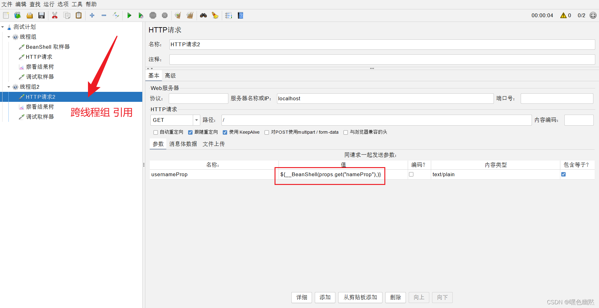 3)也可以使用jmeter内置函数 ${__BeanShell(props.get("变量名"),)} 引用变量;