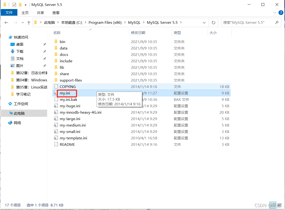 在 MySQL 服务启动的情况下,出现闪退的问题,这就可能是 MySQL 的配置出现了问题。更进一步,可能是C:ProgramFilesMySQLMySQL Server X.X的my.ini文件(安装路径下)有问题。对于此问题: