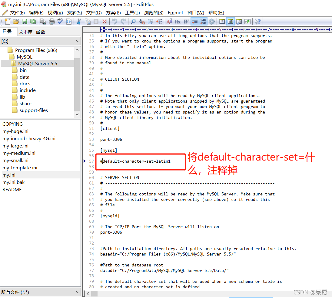 方法 3:修改MySQL安装目录下的my.ini文件,将里面的default-character-set=***注释或删除掉,在服务里重启MySQL服务,即可。