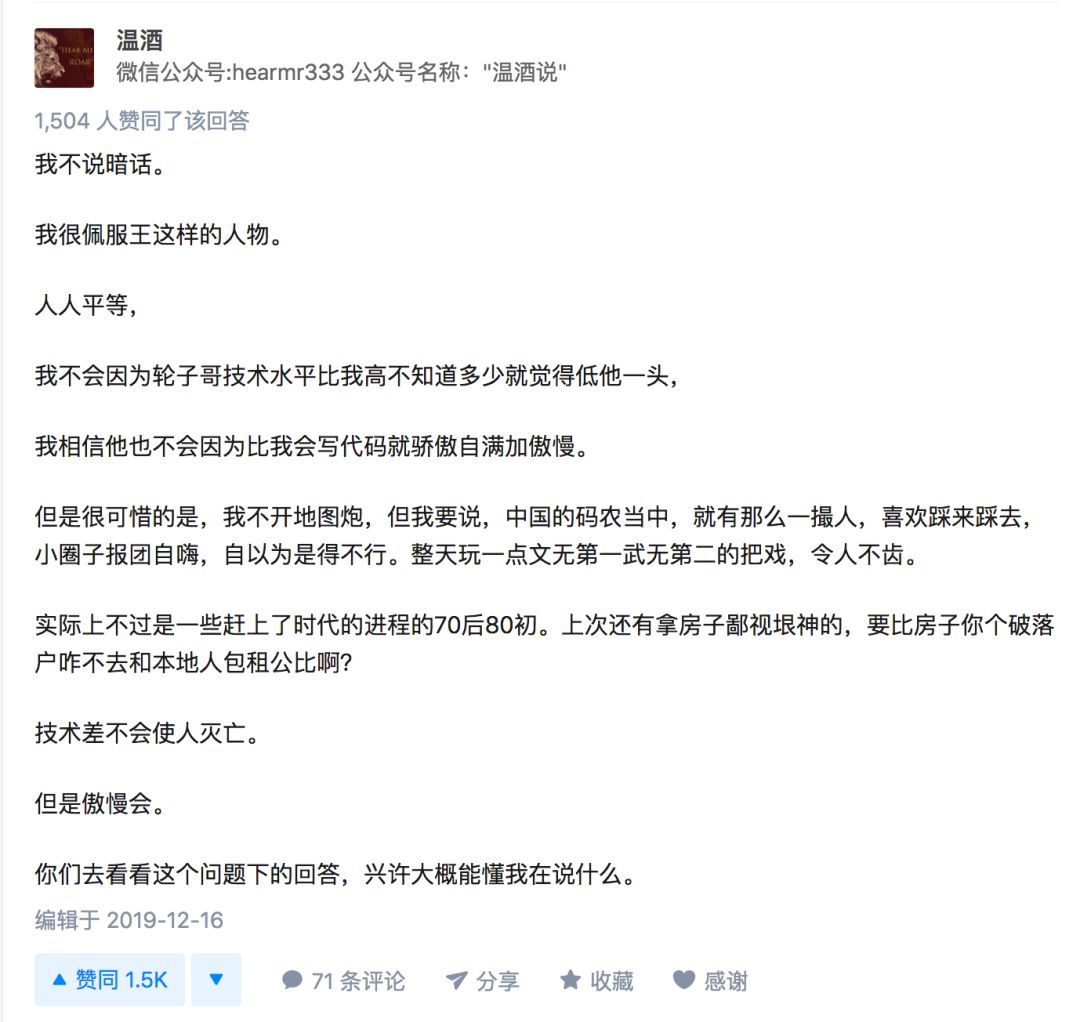 一个程序员究竟该如何被尊重?如果你对这个神仙打架有什么看法,欢迎留言区留言。