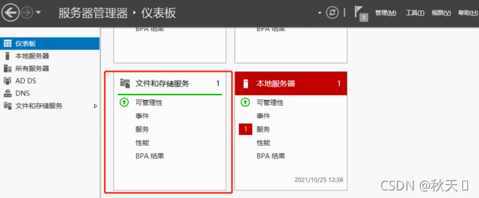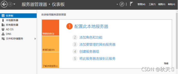 1.打开Windows服务管理器<仪表盘,选择“添加角色和功能”