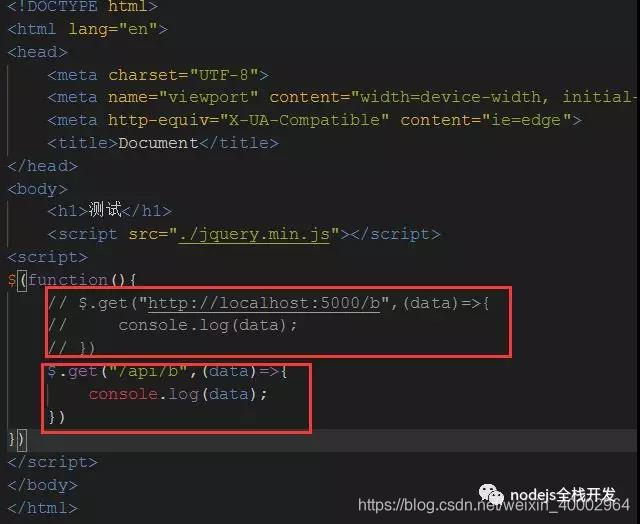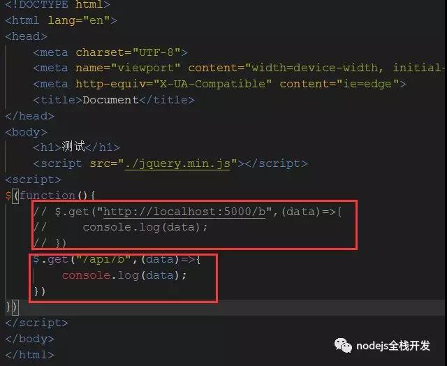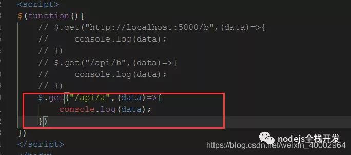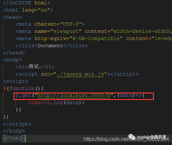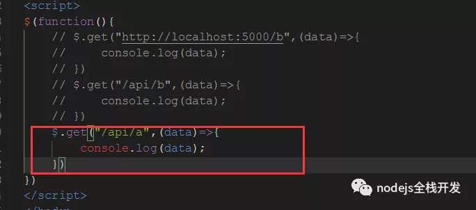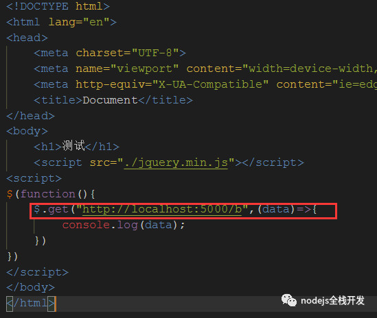 此时重启静态资源服务器,并将啊,a.html页面中发送ajax的地址稍微改动一下,如图: