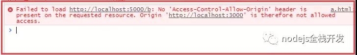 如图所示,发生跨域了,此时在静态资源服务器中安装http-proxy-middleware 中间件,并将其集成到静态资源服务器中。