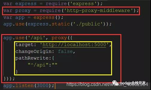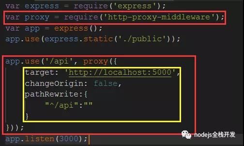 回顾上面的代码,我们只是在静态资源服务器中应用了http-proxy-middleware中间件,这个中间件的使用非常简单,分为如下几步: