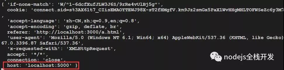仔细观察host是localhost:5000,而将changeOrigin改为false呢?再次打印req.headers: