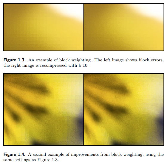 在许多情况下,其它权重也可以改善压缩纹理的质量。其中之一是块错误检查,尤其是在大面积具有复合渐变的纹理上。默认情况下,没有基于块内部错误的检测权重,两个相邻块边界处的纹理像素可能在其自身纹理像素的误差范围内,但在相邻的位置处具有噪声,这意味着块之间差距比较大。可以使用命令行参数解决: