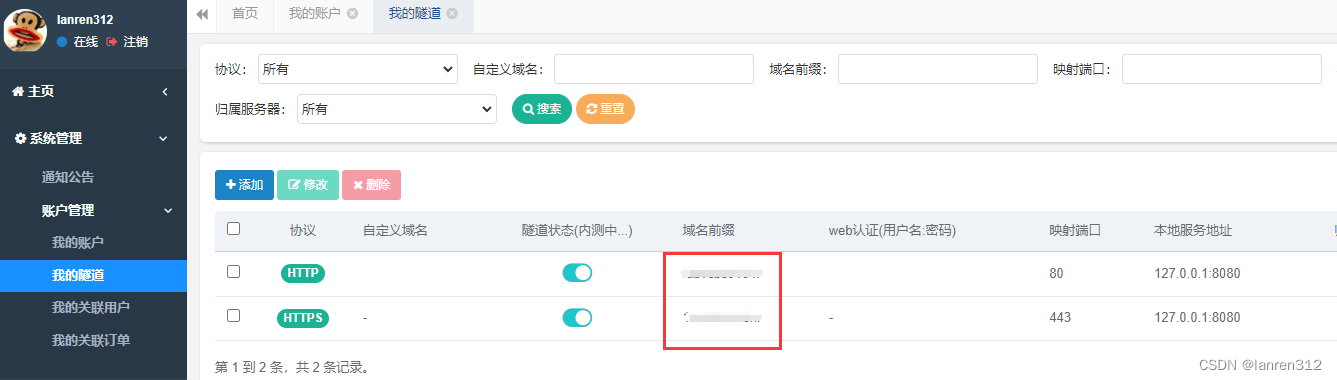 切换后果然就很快了,域名也从域名为*.ngrok.xiaomiqiu123.top变更为*.ngrok2.xiaomiqiu123.top