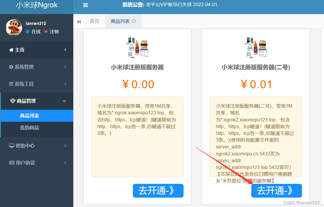 写到最后,如果你也有一台闲置的云服务器,你可以用它搭建frp内网穿透服务,可以实现可小米球一样的效果哟,具体实现方法将在我的另一篇博客中记载 https://blog.csdn.net/lanren312/article/details/127941339