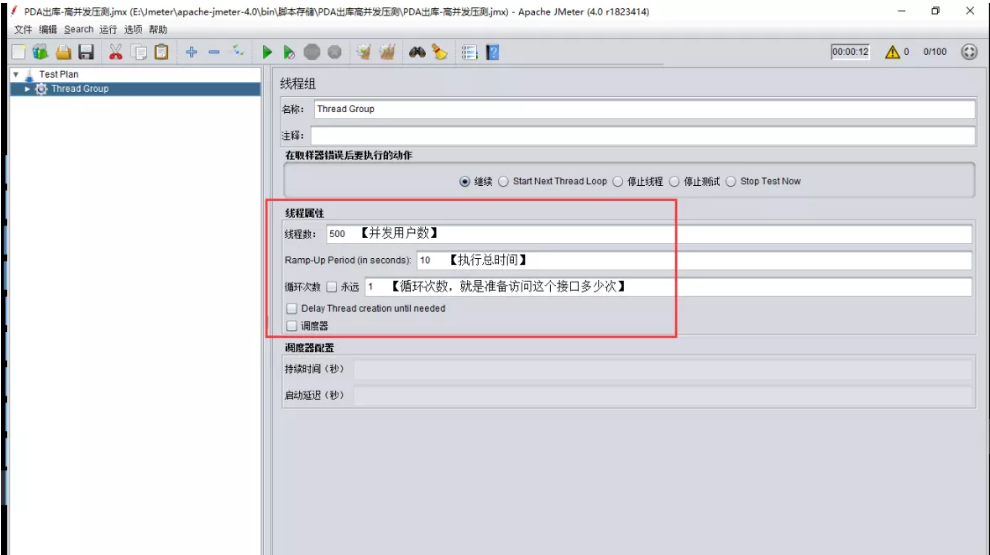 Ramp-up: 运行全部线程的总时间,单位是秒。
