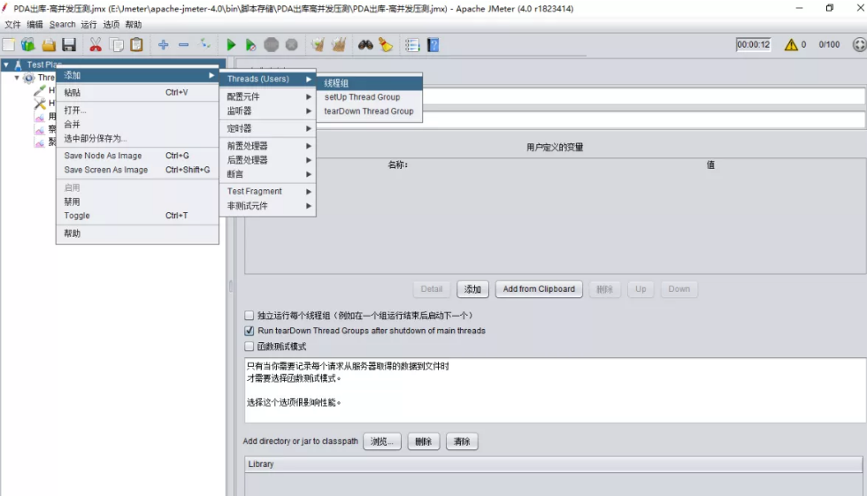 1、首先我们建立一个测试计划:在TestPlan上右键-Threads(users)-添加线程组,如图: