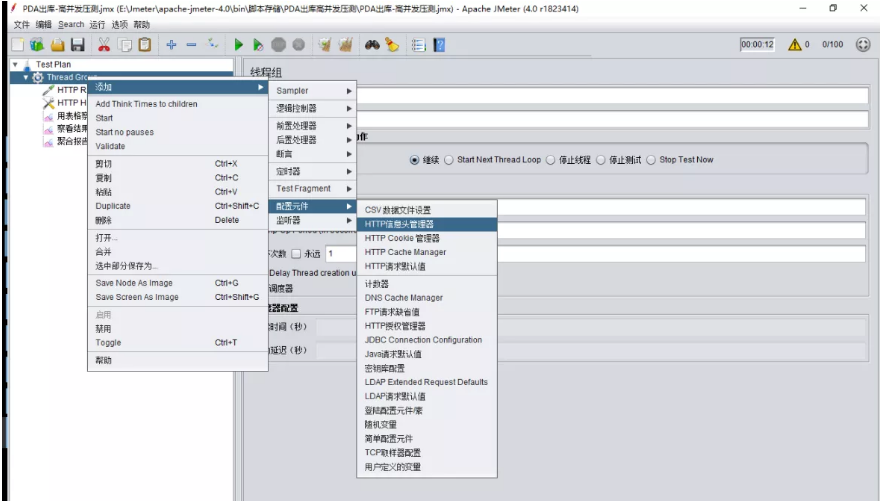 Thread Group右键-添加-配置元件-HTTP信息头管理器