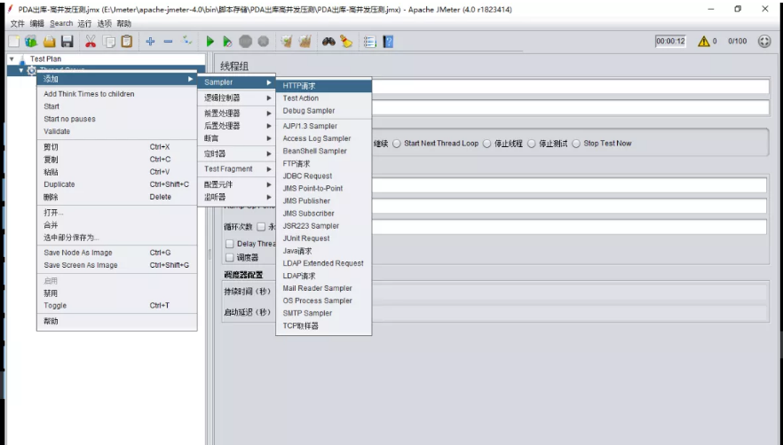 2、测试计划上点击右键-Sampler-HTTP请求: