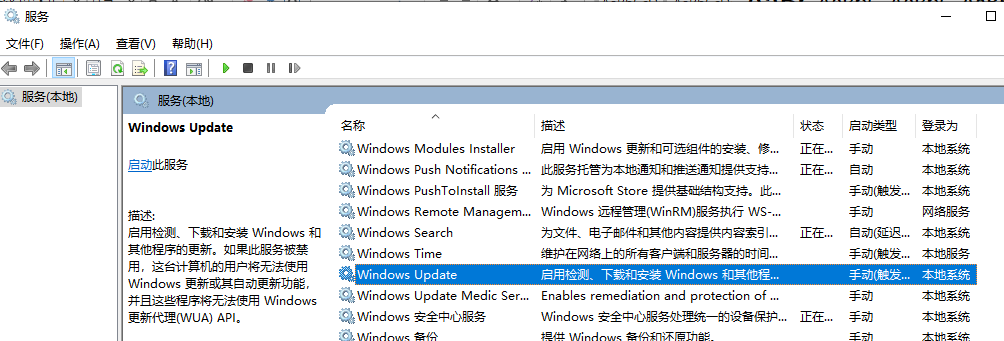 进去Windows服务管理界面,并且找到Windows update双击进去