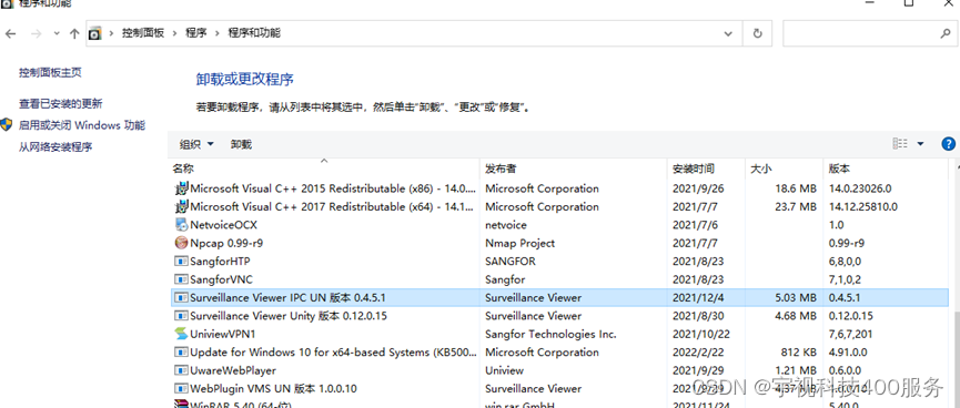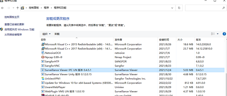 控制面板——程序——卸载程序,卸载Surveillance Viewer IPC UN版本。