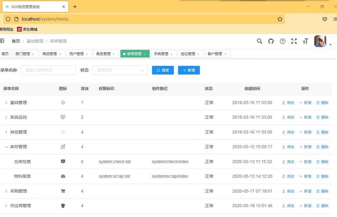 3.库存管理:库存管理主要是针对采购的物料信息进行入库和出库的管理,方便了用户对物料的登记管理。