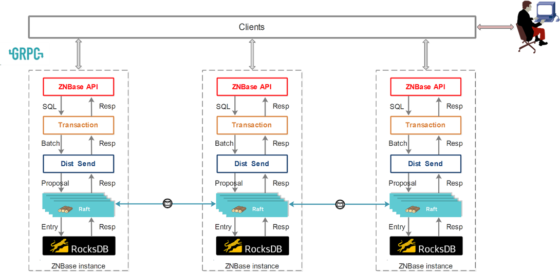 KaiwuDB 利用 etcd-raft 模块进行数据复制,每条数据操作都最终转化成一条 RaftLog,通过 RaftLog 复制功能,将数据操作安全可靠地同步到 Raft Group 中的每一个节点上。不过在实际操作中,根据 Raft 的协议,只需要同步复制到多数节点,即可安全地认为数据写入成功。
