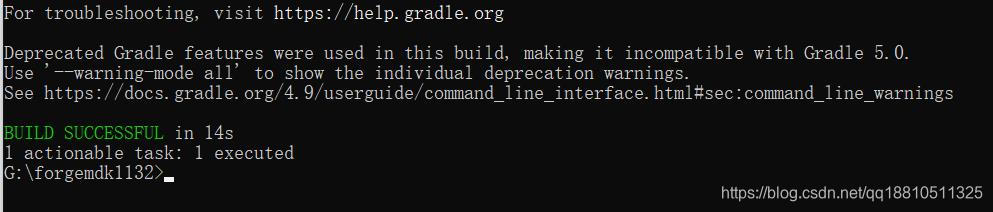 接下来就是运行mod了,但是项目里还是缺点东西,就是mc客户端源文件了,forge已经把源文件准备好了,直接运行命令就可以下载。