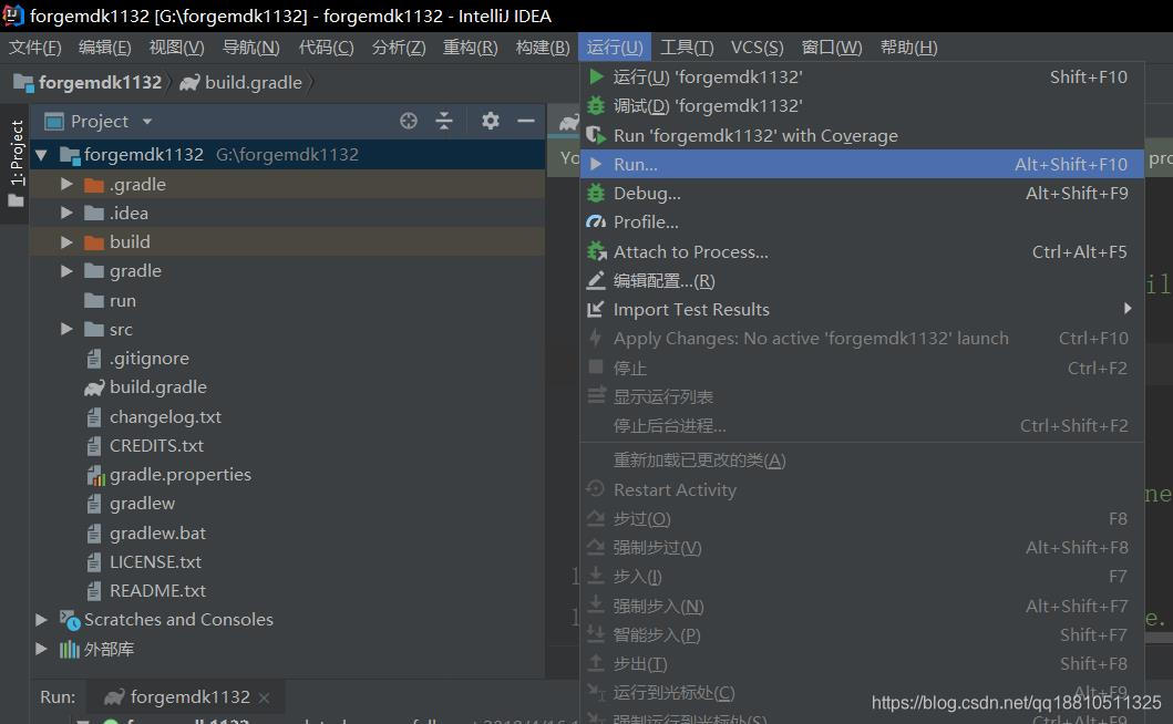 新的forge有一些改动,官网给出的命令有的无法运行,这里直接点击gradlew.bat 运行。