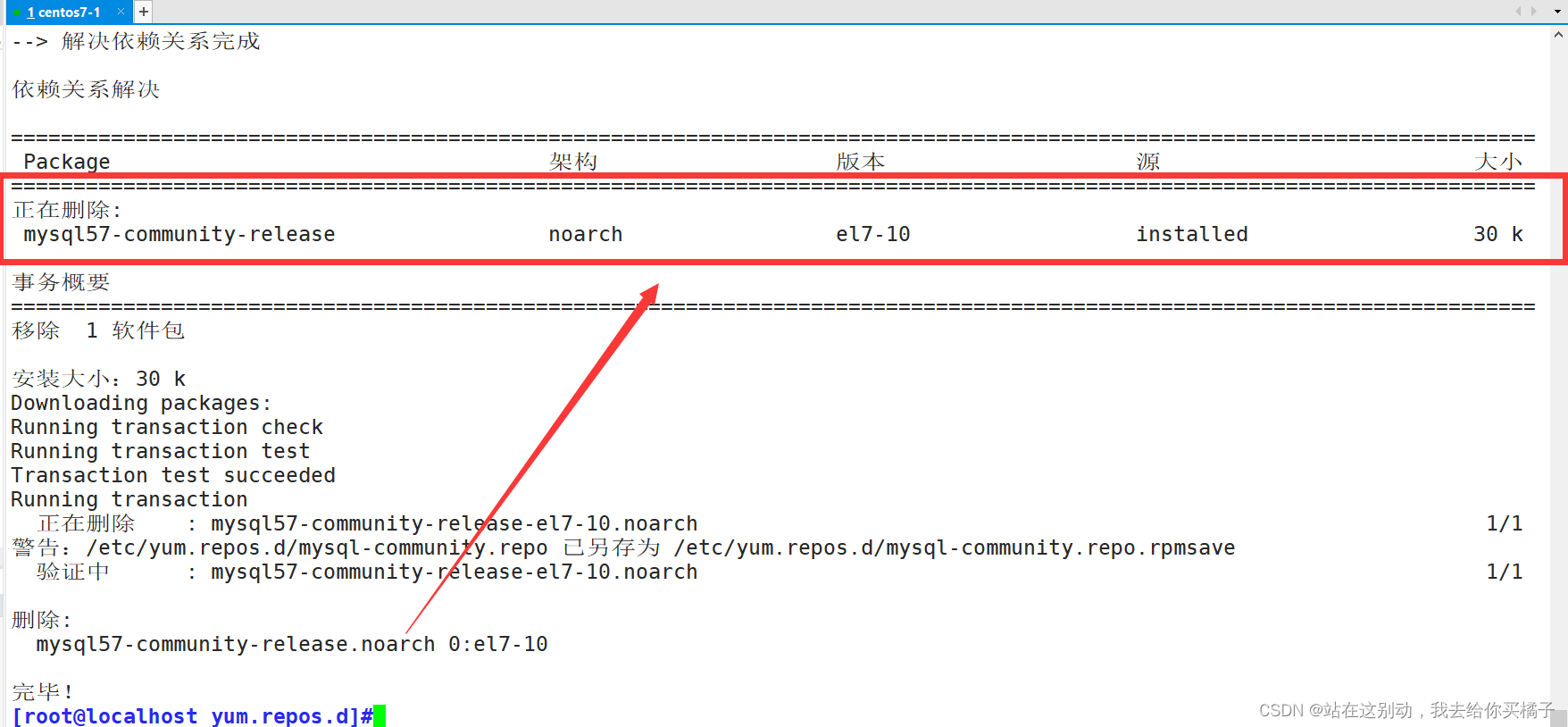 yum -y remove mysql57-community-release-el7-10.noarch #为了防止每次yum操作都会自动更新,卸载这个软件