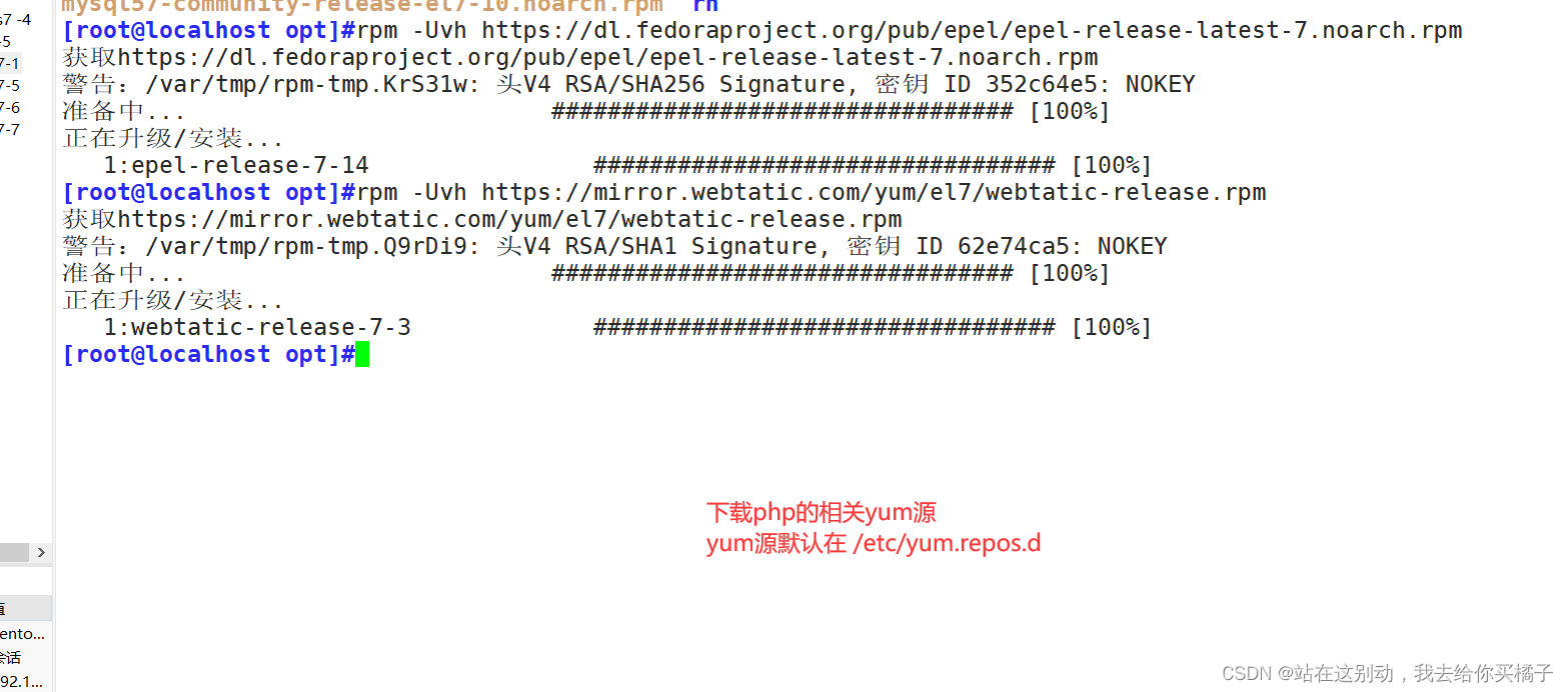 3.yum源搭建lnmp时,与本地源不同。需要向外获取资源,所以不能挪动原有yum默认配置,需要添加的直接进行添加即可。