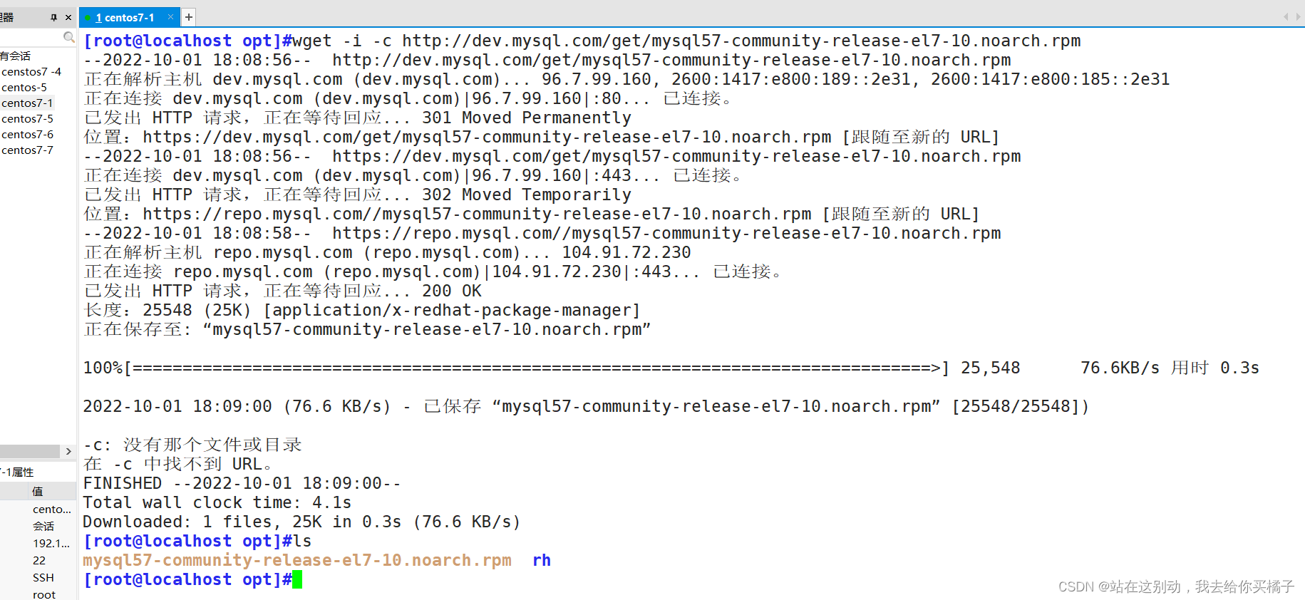wget -i -c http://dev.mysql.com/get/mysql57-community-release-el7-10.noarch.rpm