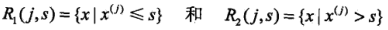 上面的两个公式是对数据集进行预划分,R1和R2分别是划分后的两个数据集,j是选择第j个变量,也就是我们熟悉的第j个特征,s是划分标准,x(j)是每个样本中第j个变量的取值。上面已经将数据预划分成了两个数据集,下面就是要计算这两个数据集的误差: