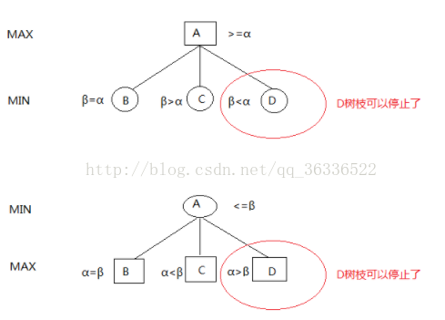 由于搜索的复杂度有点高,所以在树上减少计算量肯定是剪枝了,这里我们把剪枝的办法称作的:α-β剪枝