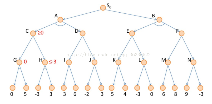 我们在前面的文章中谈到,当第一次运作的是A,则所有的奇数深度的节点都是A做的选择,所有偶数深度的节点都是B做的选择。这很好理解,因为选手是轮流进行行为的。