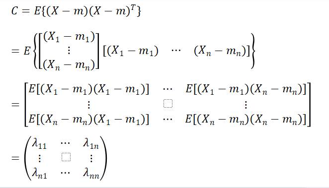 协方差矩阵说明随机向量X的各分量的分散情况,定义为: