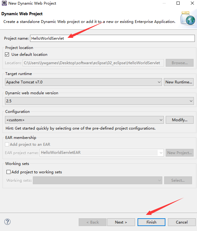 2. 工程名字HelloWorldServlet