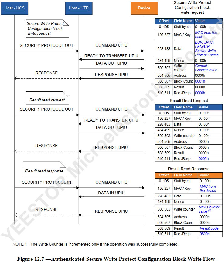 已验证的安全写保护配置块写入序列由SECURITY PROTOCOL OUT cmd启动。