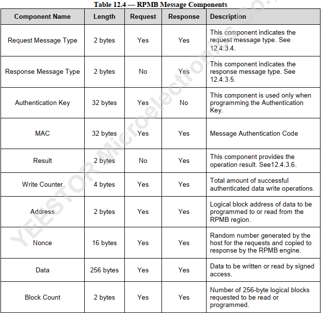 - 如果MAC和写计数的比较都成功,那么写请求认证通过。请求的数据会写在RPMB数据区;