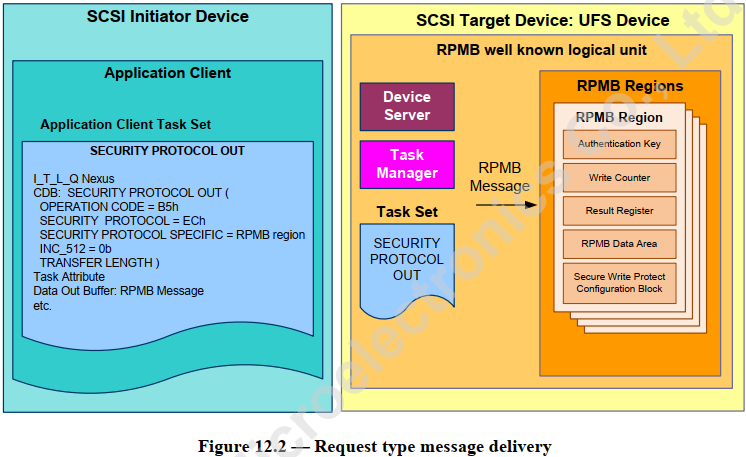 RPMB Message数据帧的传送是通过SCSI 安全协议命令;
